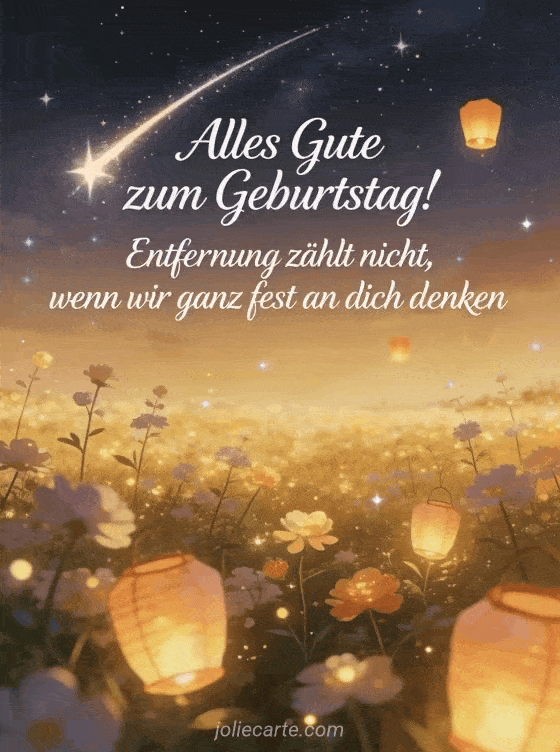 Alles Gute zum Geburtstag! Entfernung zählt nicht, wenn wir ganz fest an dich denken Eine poetische und liebevolle Geburtstagsbotschaft für Verbundenheit über jede Distanz.