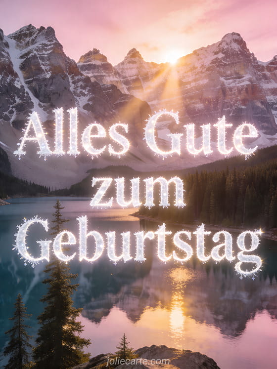Teile einen ruhigen und leuchtenden Geburtstagsgruß mit dieser grandiosen Bergkarte im Sonnenaufgang. Entdecke auch alles gute zum geburtstag oder alles gute zum geburtstag, alles gute zum geburtstag schrift oder alles gute zum geburtstag wünschen.