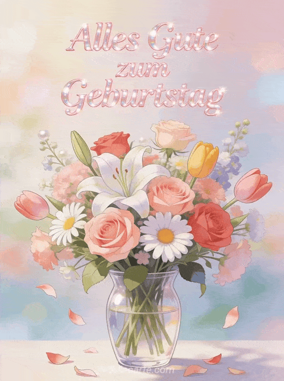 Alles Gute zum Geburtstag ein zarter Geburtstagsgruß mit einem wunderschönen Pastellblumenstrauß