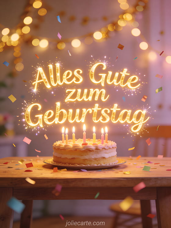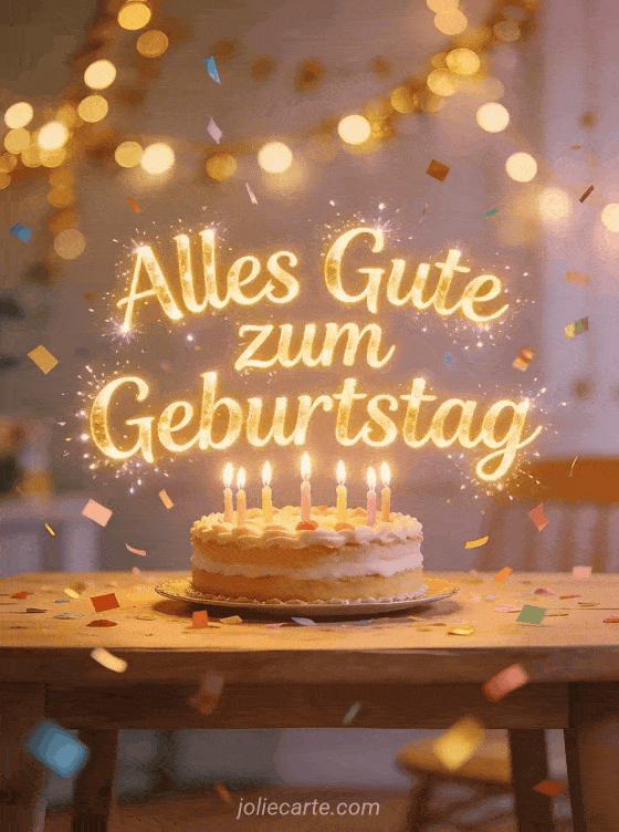 Verschicke eine festliche Geburtstagskarte mit leuchtenden Kerzen, buntem Konfetti und fröhlicher Stimmung. Entdecke auch Blumenstrauß alles Gute zum Geburtstag, ein alles Gute zum Geburtstag und alles Gute zum Geburtstag GIF rot.