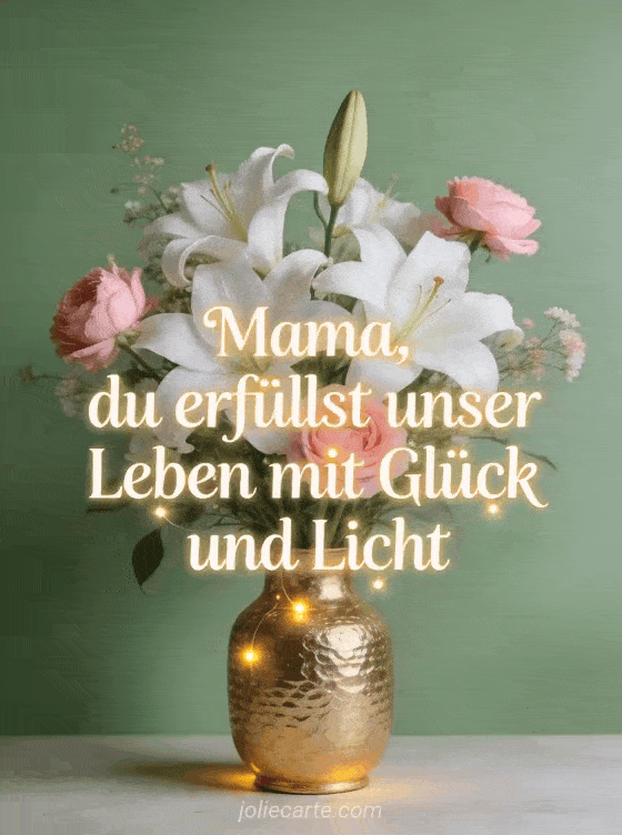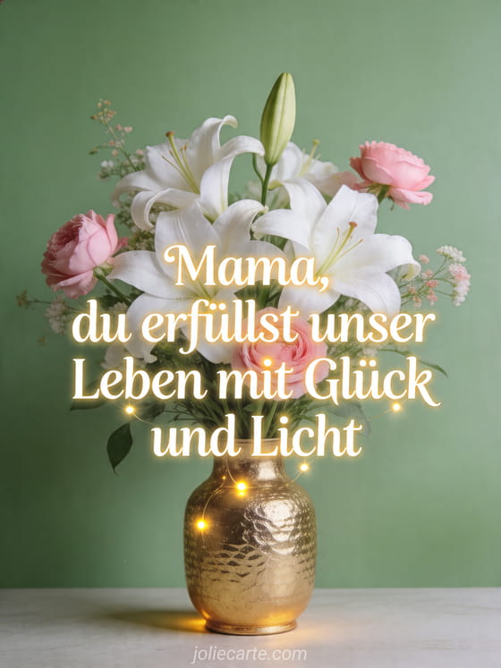 Mama, du erfüllst unser Leben mit Glück und Licht eine zarte Geburtstagsbotschaft für Mama mit elegantem Blumenstrauß