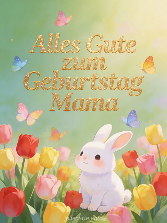 Überrasche deine Mama mit einer fröhlichen Geburtstagskarte voller Tulpen und Schmetterlinge. Entdecke auch Geburtstagsblumen Mama, alles Gute zum Geburtstag Mama oder geburtstagskarte vom kind für mama.