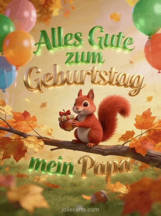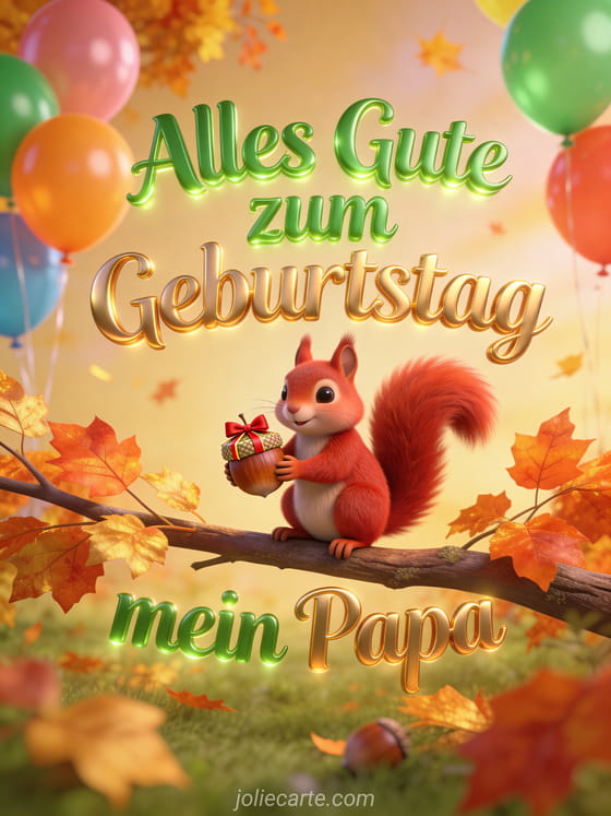 Mache den Geburtstag deines Papas besonders mit einer hellen Karte voller Herbstfarben und einem niedlichen Eichhörnchen. Entdecke auch geburtstag papa sms, alles gute zum geburtstag papa bild oder Geburtstag Zeichnung Papa.