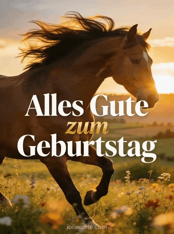 alles Gute zum Geburtstag Pferd ein majestätischer Geburtstagsgruß mit galoppierendem Pferd