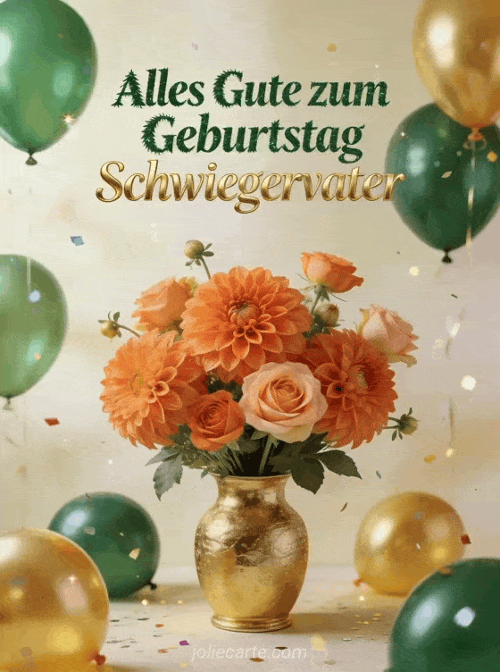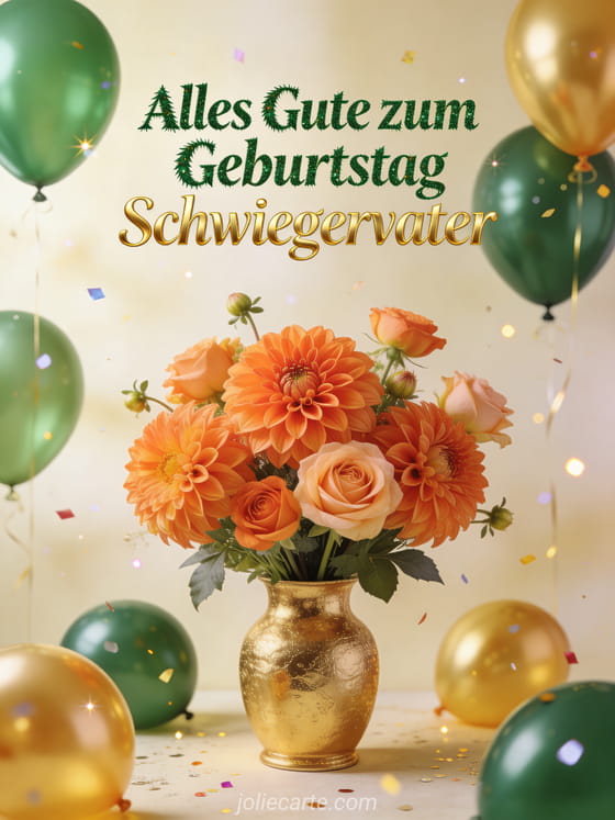 Überrasche deinen Schwiegervater mit einer eleganten Geburtstagskarte mit Dahlien, Ballons und Konfetti. Entdecke auch geburtstag papa sms, alles gute zum geburtstag papa bild oder alles gute zum geburtstag mein papa.