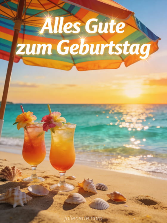 Sende einen fröhlichen Geburtstagsgruß mit dieser tropischen Strandkarte voller Licht und Ferienatmosphäre. Entdecke auch alles gute zum geburtstag voller glück, wir wünschen dir alles gute zum geburtstag oder alles gute zum geburtstag süße katze.
