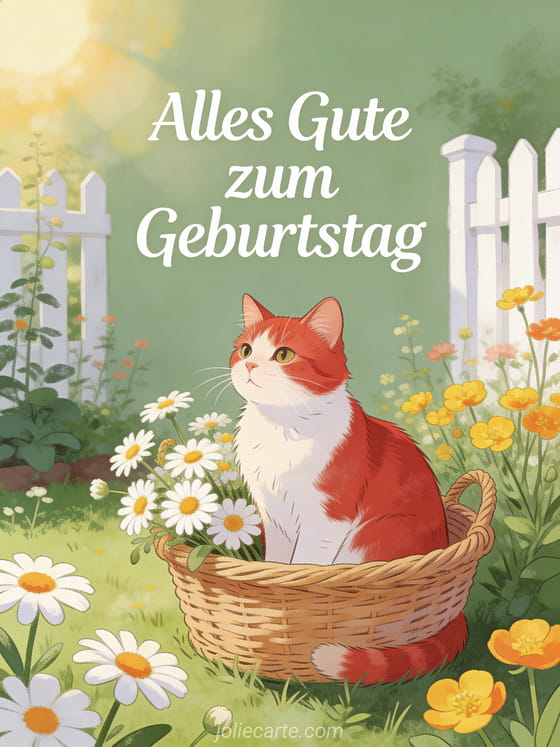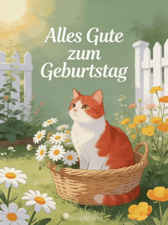 animiert alles gute zum geburtstag katze ein süßer und friedlicher Geburtstagsgruß mit Frühlingsgarten-Charme