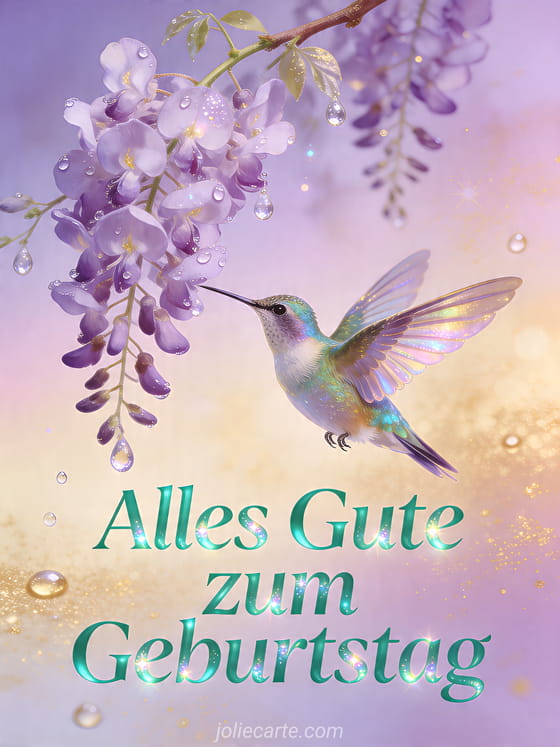 Alles Gute zum Geburtstag ein zarter geburtstagsgruß mit kolibri und glyzinie