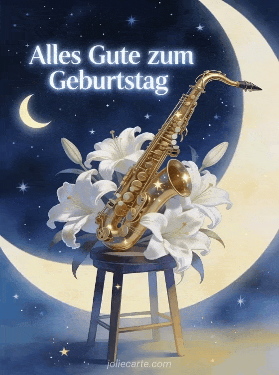 Begeistern Sie Ihre Liebsten mit dieser animierten Geburtstagskarte mit einem goldenen Saxophon und einer magischen Sternennacht-Atmosphäre. Entdecken Sie auch eine animierte Geburtstagskarte oder kostenlose animierte Geburtstagskarten für weitere animierte Optionen.