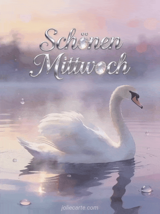 Senden Sie einen eleganten Gruß zum schönen Mittwoch mit einem weißen Schwan, der bei Morgendämmerung über einen spiegelglatten See gleitet, umgeben von sanftem Nebel und pastellfarbenen Spiegelungen. Entdecken Sie auch Schönen Mittwoch Berg, animierte Schönen-Mittwoch-Bilder oder guten Morgen es ist Mittwoch.