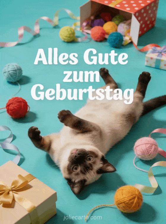 animiertes gif alles gute zum geburtstag katze gif ein schelmischer und liebenswerter Geburtstagsgruß mit verspielter Katze