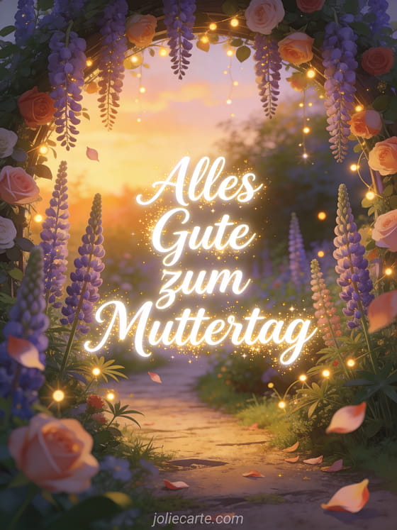 Mache den Muttertag unvergesslich mit dieser frühlingshaften Karte voller Blumen und goldenem Licht. Entdecke auch Muttertag Nachricht Karte, Zitat Muttertag und Gedicht für den Muttertag mit Reimen.