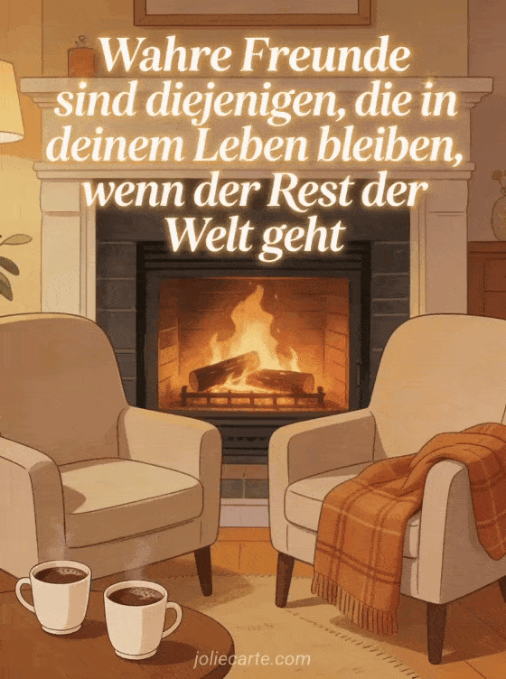 Teile diese gemütliche Freundschaftskarte und erinnere jemanden daran, dass wahre Freunde immer bleiben. Entdecke auch GIFs Ich denke an dich oder ein GIF ich denke sehr an dich.