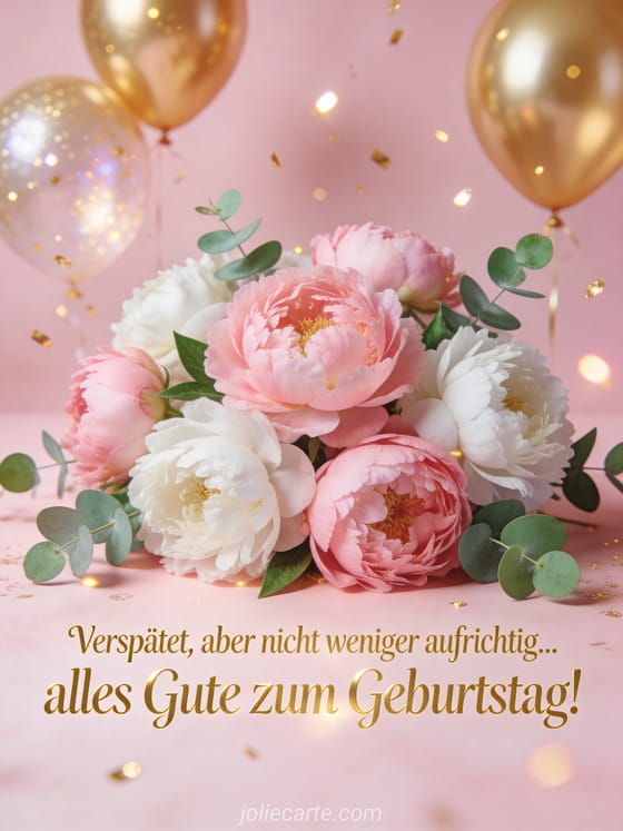 Entschuldige dich für einen vergessenen Geburtstag mit diesem eleganten nachträglichen Geburtstagsbild voller Aufrichtigkeit und guten Wünschen. Entdecke auch eine nachträgliche Geburtstagsgrüße schicken Karte, eine nachträgliche Geburtstagskarte Katze oder eine weitere nachträgliche Geburtstagsgrüße schicken Karte.