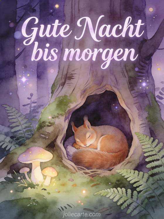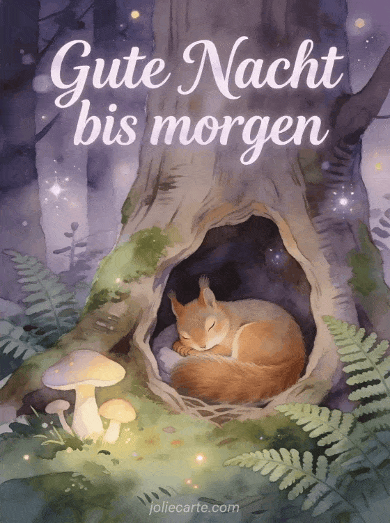 Bild gute Nacht, bis morgen ein magischer Gute-Nacht-Wunsch in einer friedlichen Waldszene
