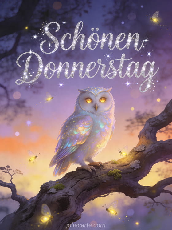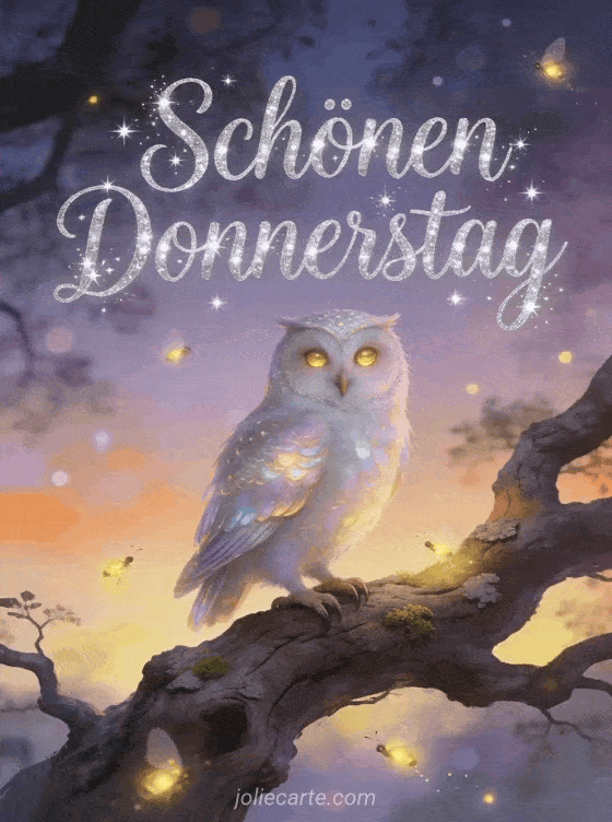 Teilen Sie einen schönen Donnerstag voller Waldzauber mit dieser leuchtenden Eulenkarte. Entdecken Sie auch bilder schönen donnerstag, sonniger donnerstag oder schönen donnerstagabend.