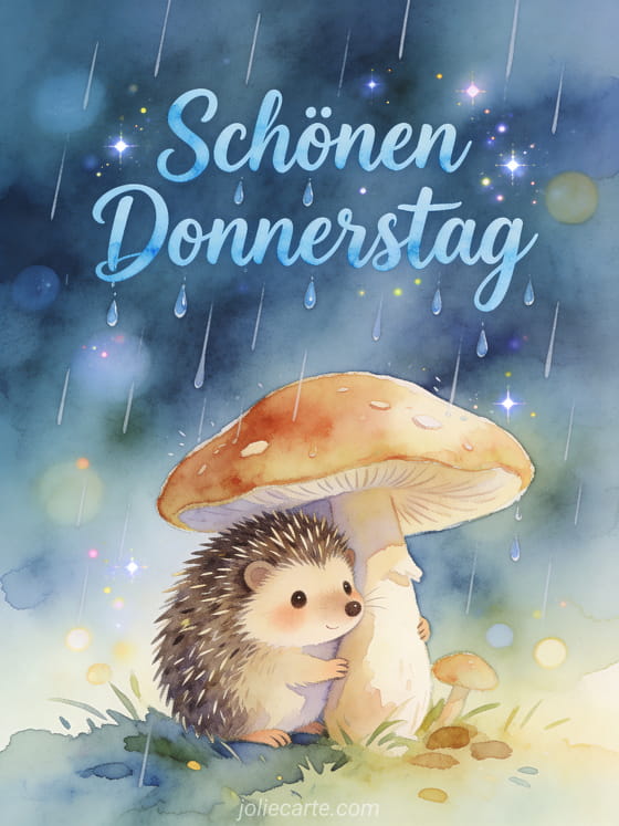 Bild schöner Donnerstag regnerisch ein gemütliches Regentag-Bild mit einem süßen Igel unter einem Pilz