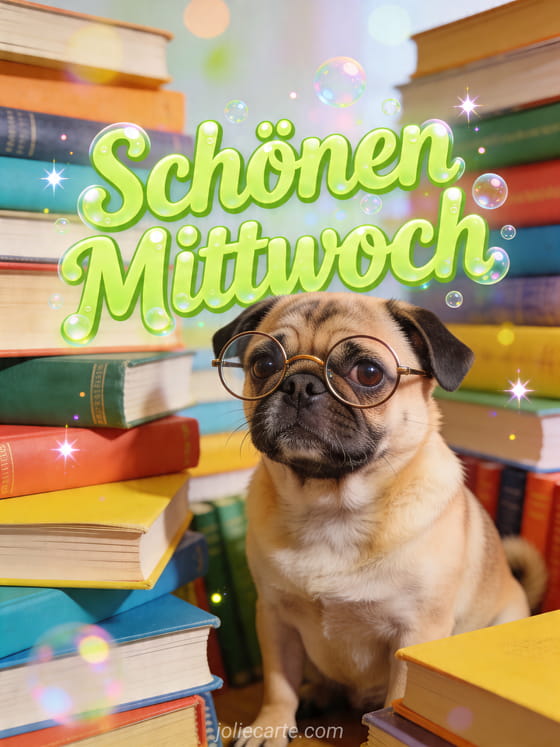 schönen mittwoch ein lustiger mittwochsgruß mit einem cleveren mops und viel humor