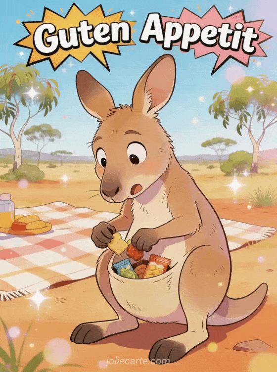 Bilder Guten Appetit Humor eine witzige Guten-Appetit-Karte mit einem überraschten Känguru auf Snack-Suche
