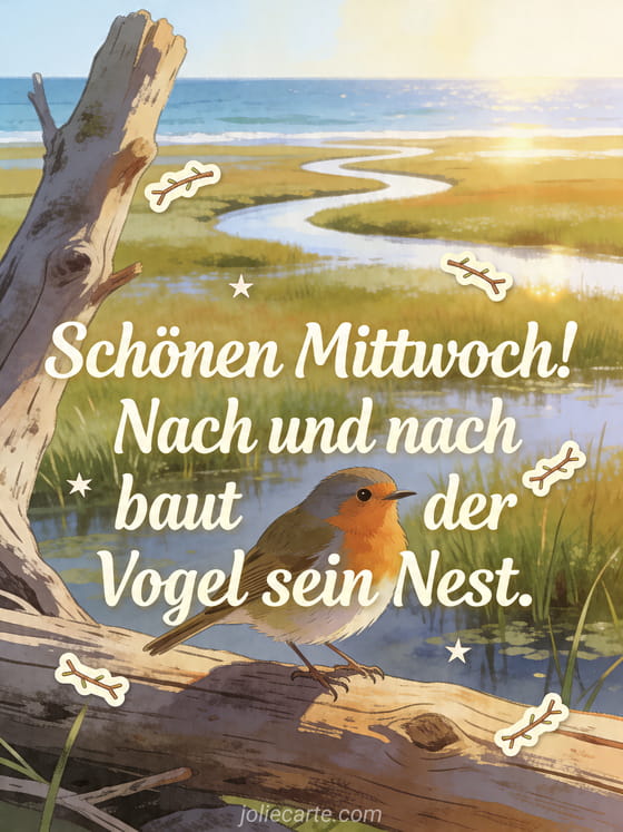 Schönen Mittwoch! Nach und nach baut der Vogel sein Nest. ein friedlicher Mittwochsgruß aus der Natur