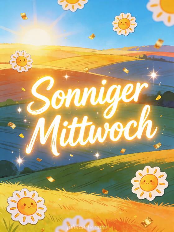 Teilen Sie einen strahlenden Gruß für einen sonnigen Mittwoch, um Wärme und Optimismus zu schenken. Entdecken Sie auch schönen mittwoch nachricht, lustig schönen mittwoch gif und humorvoll animiert schönen mittwoch.