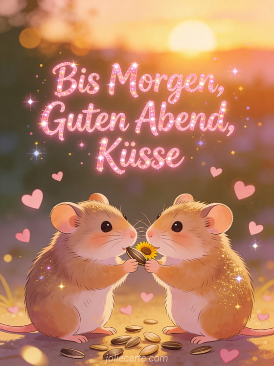 Schicke einen süßen und liebevollen Abendgruß mit dieser kostenlosen Karte. Entdecke auch eine Karte guten Abend bis morgen Küsse oder eine Karte bis morgen guten Abend.