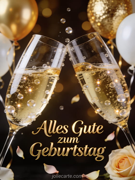 Stoße auf ihren Geburtstag mit dieser eleganten Champagner-Karte für die besondere Frau in deinem Leben an. Entdecke auch eine Geburtstagsnachricht für Frauen oder ein Geburtstagsbild Frau.