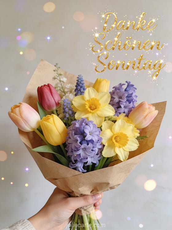 Teile Dankbarkeit und Sonntagsfreude mit dieser wunderschönen Blumenkarte. Entdecke auch ein schönen sonntag gif oder ein glück schönen sonntag zitat.