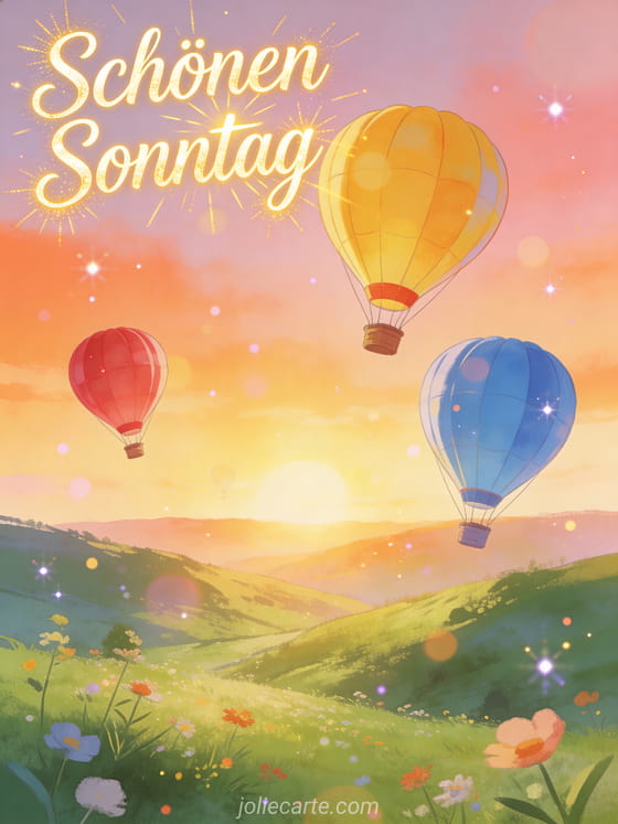 einen schönen Sonntag wünschen ein fröhlicher Sonntagswunsch mit bunten Heißluftballons