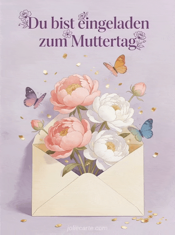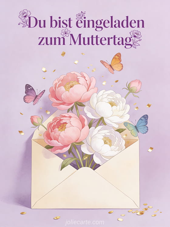 Teile diese festliche Muttertagseinladung, um eine fröhliche Feier anzukündigen. Entdecke auch Karte schöner Muttertag, liebe Worte Muttertag und Einladungskarte Muttertag.