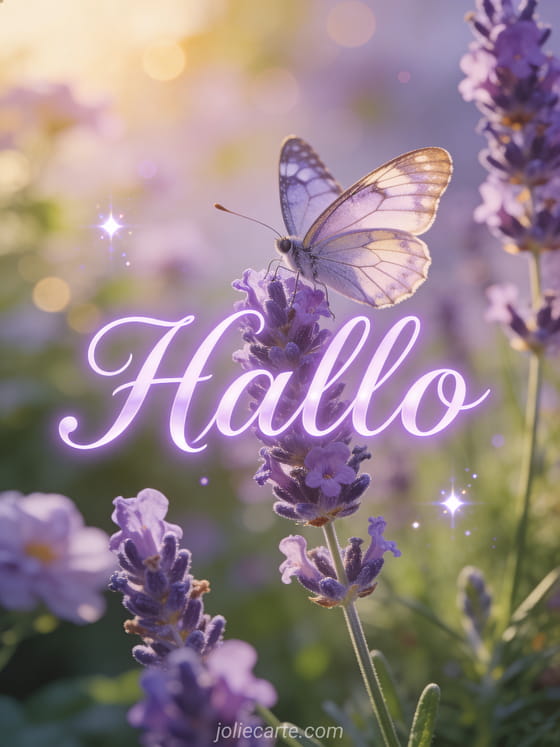 Hallo eine elegante Hallo-Karte mit einem wunderschönen Schmetterling auf Lavendelblüten