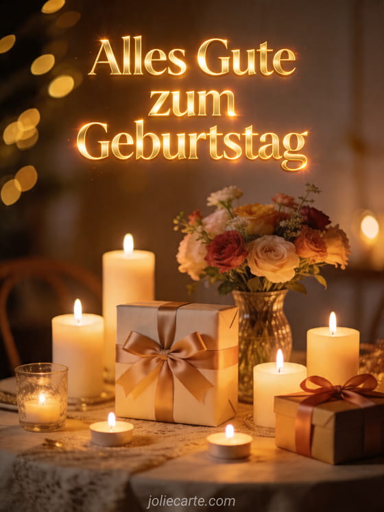 Feiere einen besonderen Tag mit dieser herzlichen und festlichen Geburtstagskarte mit Kerzen, Blumen und Geschenken. Entdecke auch alles gute zum geburtstag, sms zum geburtstag oder alles gute zum geburtstag gärtner.