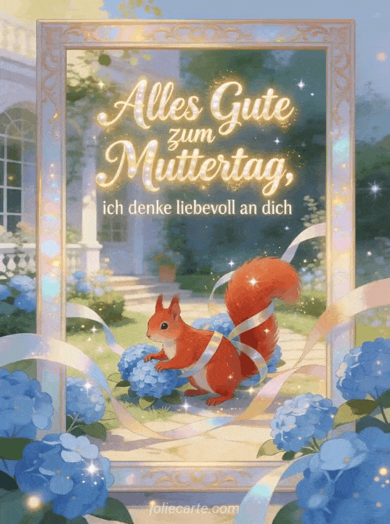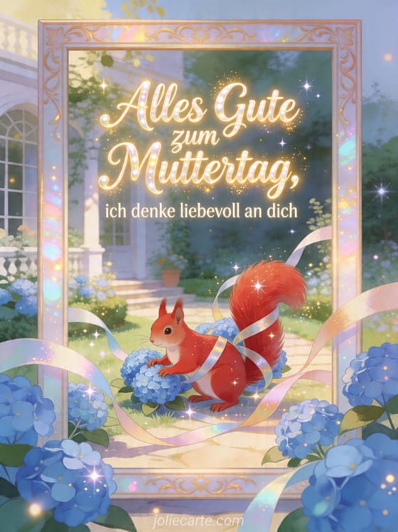 Teilen Sie einen sanften Muttertagsgedanken mit einer fröhlichen illustrierten Karte voller blauer Hortensien, Bänder und funkelndem Tageslicht. Entdecken Sie auch Muttertagspoesie, ein Kompliment zum Muttertag oder wie du deiner Mama alles Gute zum Muttertag wünschst.