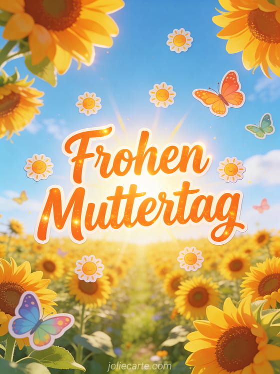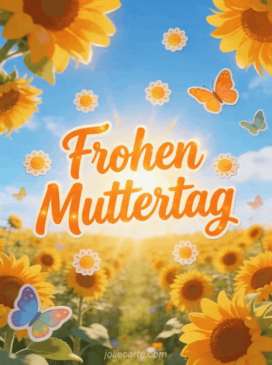 Feiere den Muttertag mit einer strahlenden Karte im Sonnenblumenfeld-Stil. Entdecke auch gifs alles Gute zum Muttertag, Blumen zum Muttertag und Muttertag Poster.