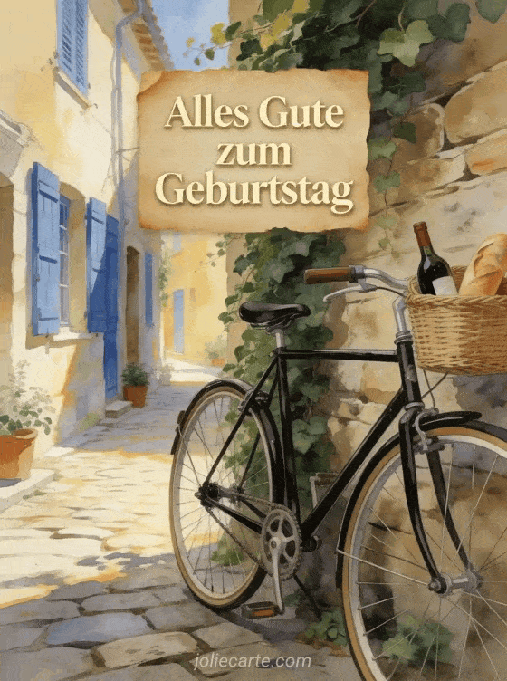 Geburtstag GIF Mann kostenlos ein charmantes Vintage-Fahrrad in provenzalischer Kulisse