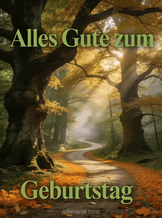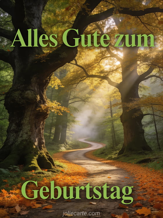 Alles Gute zum Geburtstag Ein majestätischer Geburtstagsgruß auf einem verzauberten Waldweg.