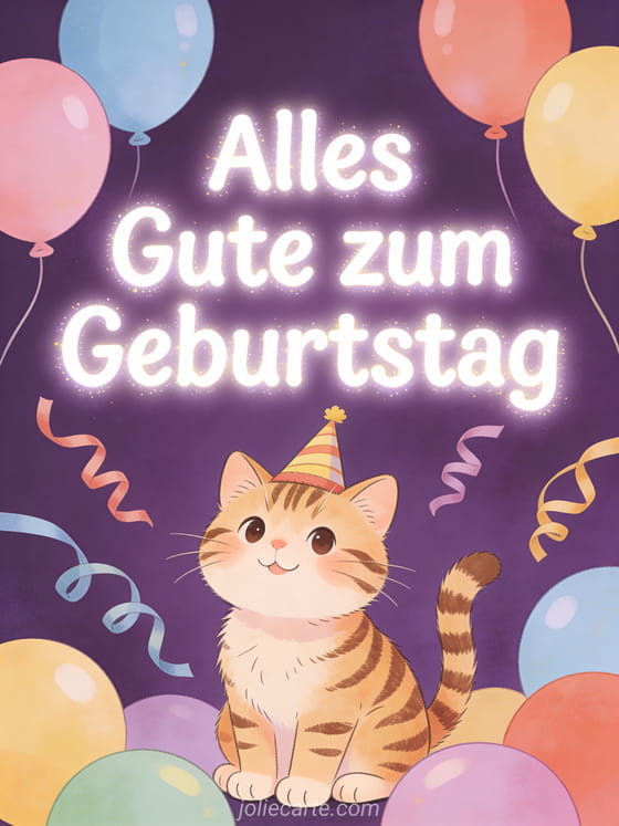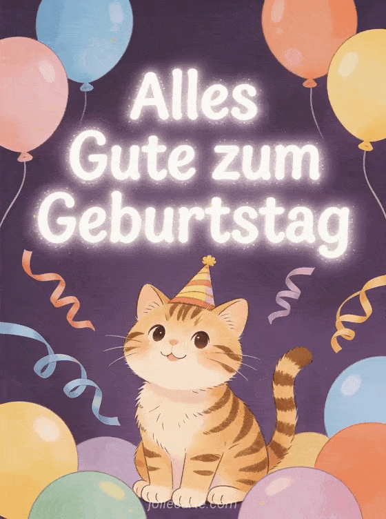 Alles Gute zum Geburtstag ein süßer und festlicher Geburtstagsgruß mit Katze