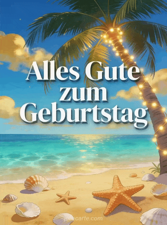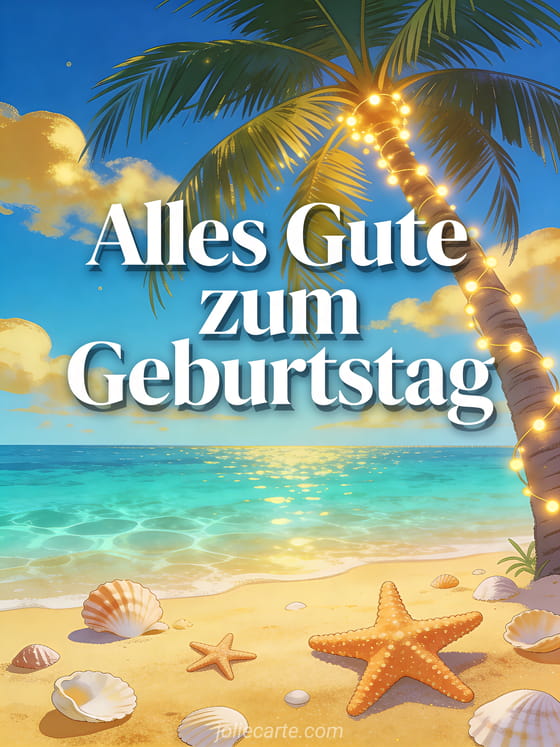 Teile eine sonnige Geburtstagsbotschaft mit dieser paradiesischen Strandkarte voller Sommerfreude. Entdecke auch Geburtstagskarten Frau, bilder alles gute zum geburtstag frau kostenlos oder glamour alles gute zum geburtstag frau schick.