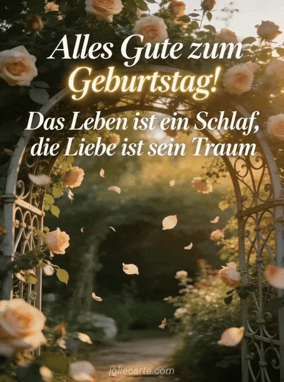 Sende einen wunderschönen Geburtstagsgruß mit einem poetischen Spruch über Leben und Liebe. Ein geheimnisvollen Rosengarten begleitet diese elegante Karte. Entdecke auch einen Geburtstagsgruß Herz unsichtbar oder eine Geburtstagsnachricht schreiben.