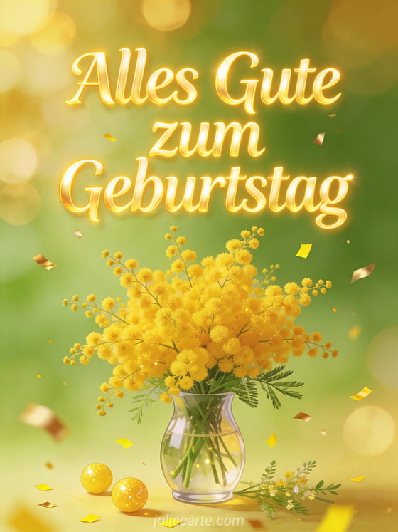 Schick eine wunderschöne Geburtstagskarte Mimosenstrauß, um den besonderen Tag zu verschönern. Entdecke auch Alles Gute zum Geburtstag herzlich oder eine geburtstag ecard.