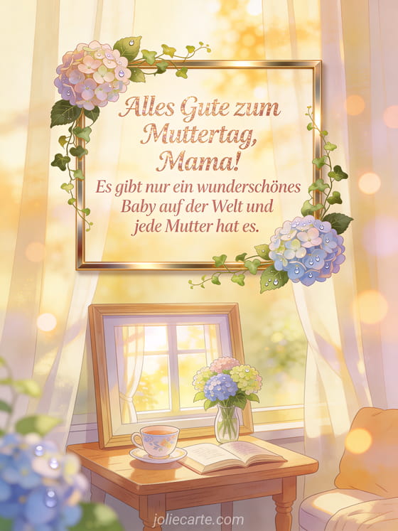 Teile ein poetisches Muttertagswort in einem zärtlichen und floralen Rahmen voller Wärme. Entdecke auch Muttertagsgrüße an meine Tochter, Poesie für Muttertag und besonderer Muttertag.