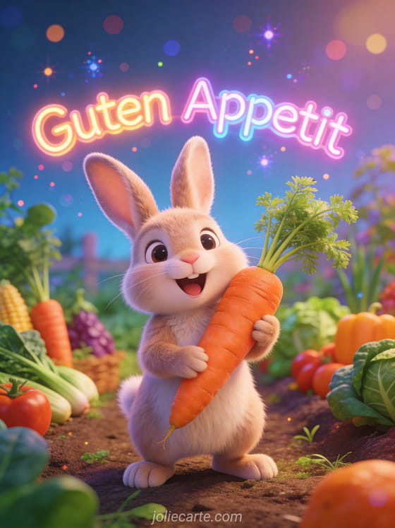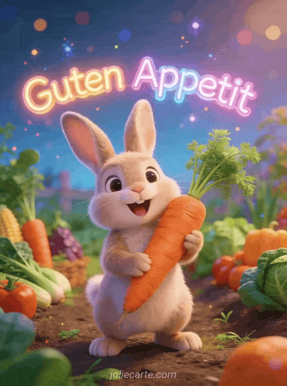 Wünsche jemandem eine schöne Mahlzeit mit dieser niedlichen Hasen-Karte. Entdecke auch animierte bilder guten appetit oder lustig Guten Appetit witzig.