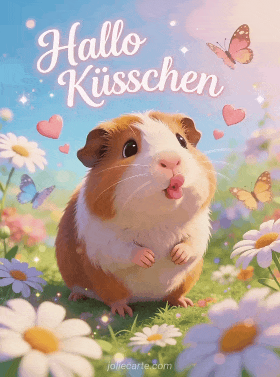 Gif Hallo Küsschen einen liebevollen animierten Gruß mit einem niedlichen Meerschweinchen, das Küsschen schickt