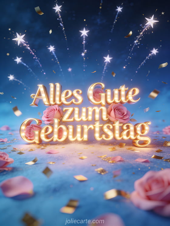 Teile diese elegante Karte mit tiefblauem Nachthimmel, goldenem Konfetti und Sternschnuppen. Entdecke auch edel blume alles gute zum geburtstag frau edel, Freundschaft Freundin Freundschaft alles Gute zum Geburtstag Frau und Rose zum Geburtstag Frau.