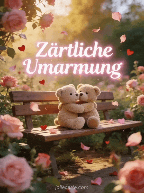 Schicke diese zärtliche Umarmungs-GIF und drücke deine Zuneigung mit einem Bild voller Emotion aus. Entdecke auch eine Karte mit zärtlichem Pärchen oder eine Liebesumarmungs-GIF.