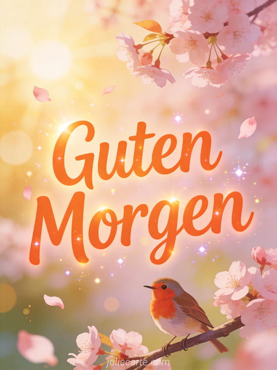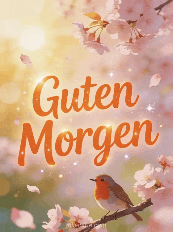 Gifs guten morgen mittwoch ein süßes Rotkehlchen auf Kirschblüten für einen schönen Mittwochmorgen