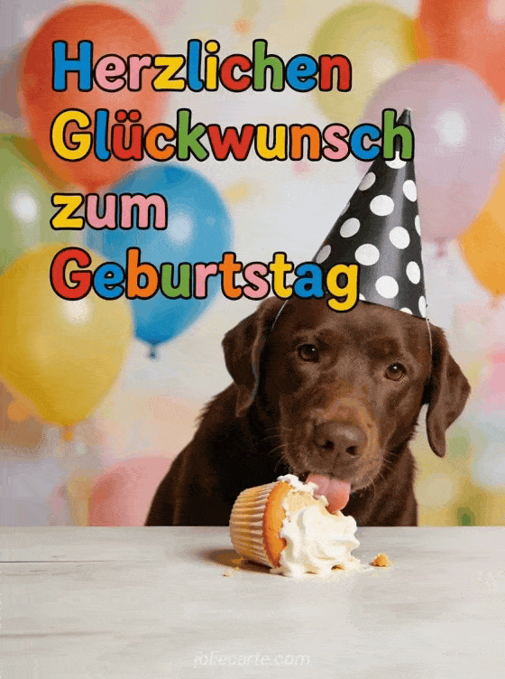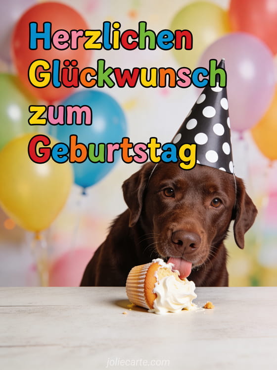 Wünsche ihr alles Gute zum Geburtstag mit dieser witzigen Karte – ein schuldiger Labrador blickt mit einem umgestürzten Cupcake. Entdecke auch eine lustiger Geburtstags-GIF für Frauen, eine Geburtstagsfoto Frau oder einen bewegender Geburtstagstext Frau.