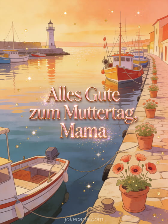 Sende diese gemütliche Karte und feiere Mama mit Licht und Liebe. Entdecke auch Liebestext Muttertag, kurze Worte zum Muttertag oder Blumenstrauß Muttertag.