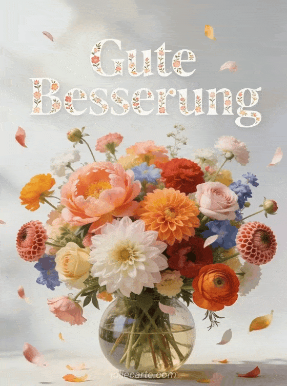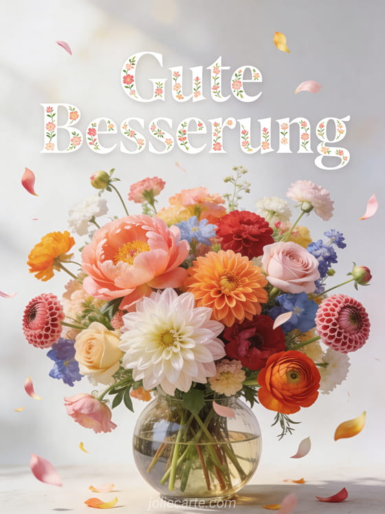 Teile diese Gute-Besserung-Karte, um Trost und Wärme mit einem üppigen Blumenstrauß zu schenken. Entdecke auch genesungswünsche text, genesungswünsche nachrichten und herz mut gute besserung.