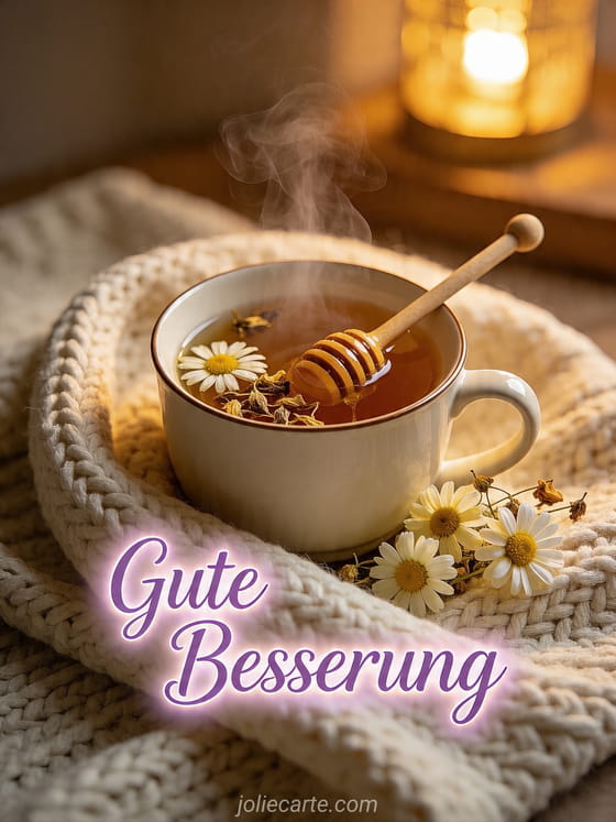 Teile eine Gute Besserung SMS karte, um während der Genesung Wärme und Trost zu schenken. Entdecke auch Text für Genesungswünsche, Gute Besserung oder Gute Besserung Blumen.